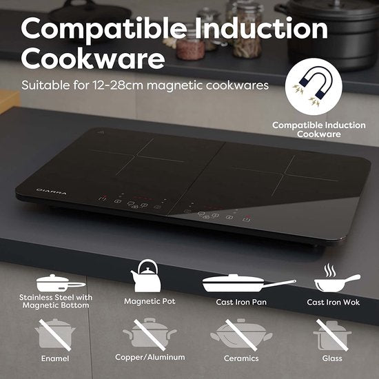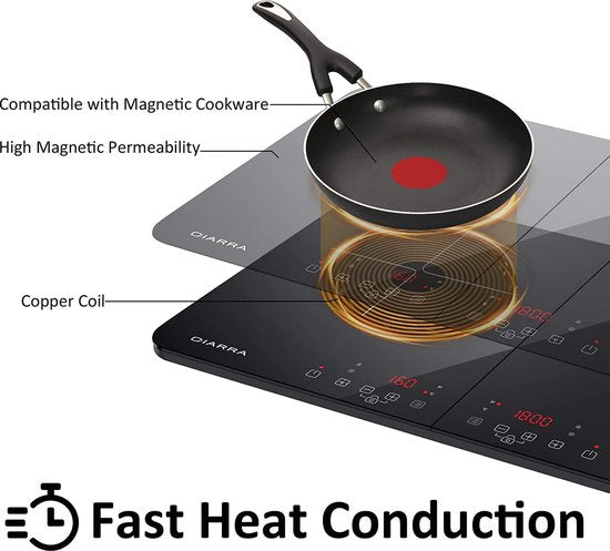 Ciarra CBTIH2 -Dubbel Inductiekookplaat - Draagbaar - 10 Temperatuurniveau's - Touchscreen - Veiligheidsslot