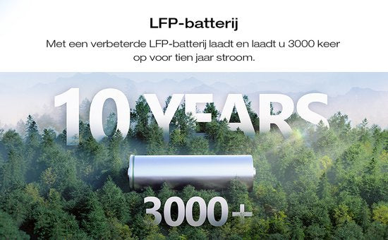 Batterij: LFP, 3000 cycli daarna capaciteit is 80%