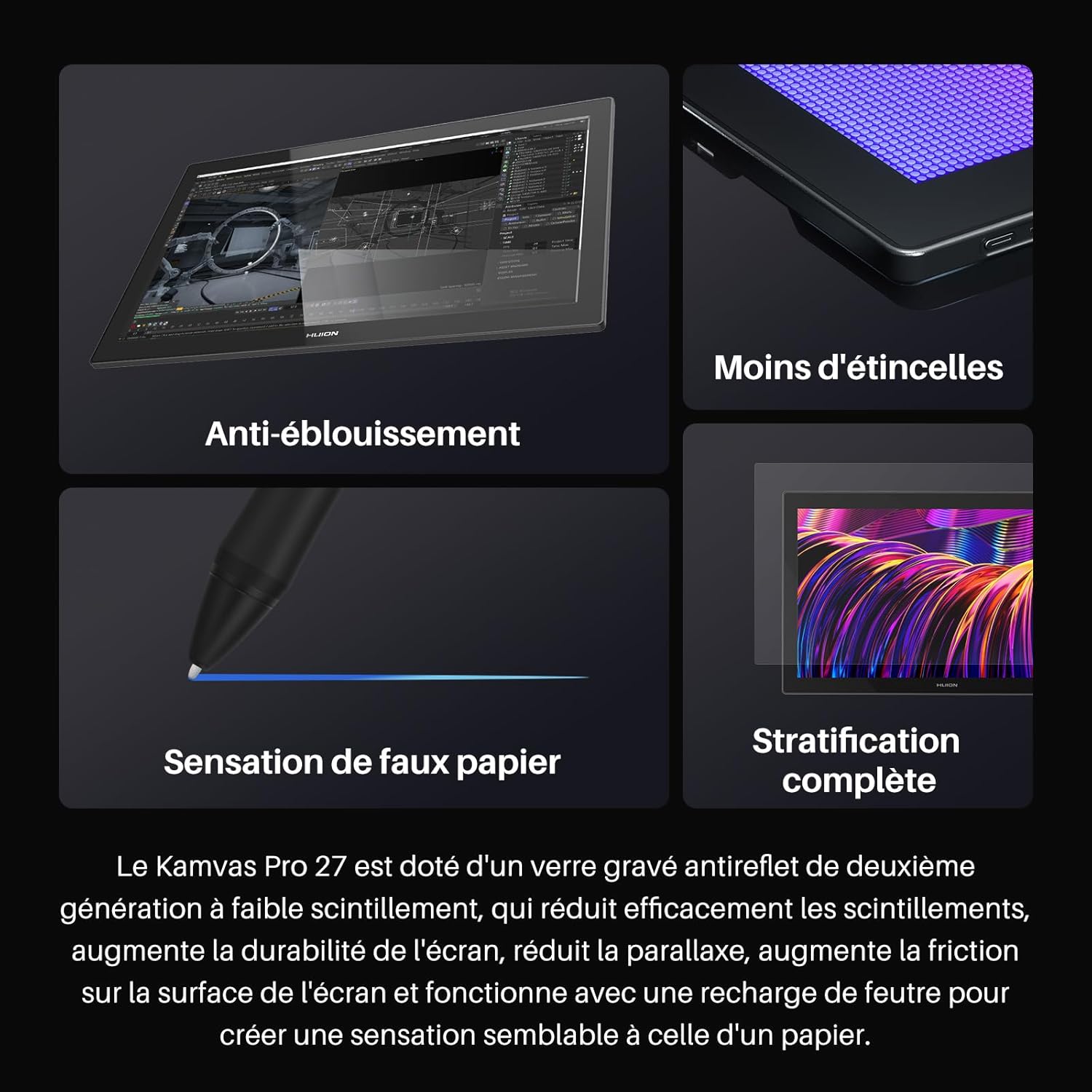 HUION KAMVAS Pro 27 4K UHD Graphics Tablet with Display, PenTech 4.0 Battery-Free Stylus with 2nd Gen Anti-Glare Etched Glass
