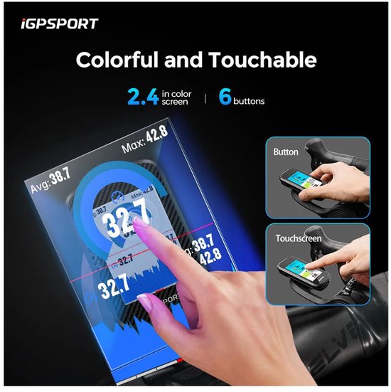 Functies:- 2.4-inch kleurentouchscreen: geüpgraded naar een 2.4-inch kleurenscherm met wereldkaart, voor een duidelijkere en intuïtievere interactieve ervaring tijdens het fietsen.- 20 uur batterijduur: de iGPSPORT BSC300T fietscomputer kan tot 20 uur continu worden gebruikt. Ondersteuning voor lange fietstochten.- Ondersteuning voor meerdere talen: de BSC300T ondersteunt Duits, Engels, Spaans, Frans, Italiaans, Pools, Portugees, Russisch, Vereenvoudigd Chinees, Traditioneel Chinees, Japans, Koreaans.- Ondersteuning voor Bluetooth, ANT+ protocol, verbinding met 11 soorten apparaten: hartslag, cadans, snelheid, vermogensmeter, snelheid/cadans 2-in-1, smart trainer, elektronisch schakelen, DI2, radar, verlichting en e-bike.