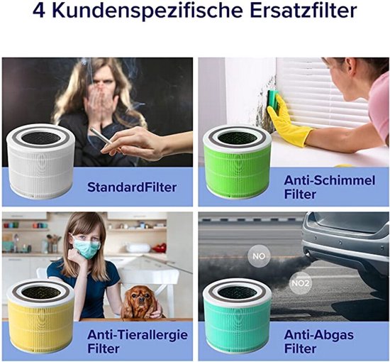Vangt rook, geuren, vluchtige organische stoffen (VOS) en ten minste 99, 97% van de deeltjes in de lucht tot 0, 3 micron, zoals zwevende deeltjes, pollen en huidschilfers van huisdieren.