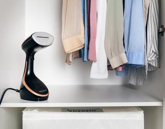 De Rowenta DR9100D1 is een handkledingstomer met een vermogen van 1600 W23. Het wordt geleverd met een dikke stoffenborstel, een accessoire voor delicate kledingstukken, een deurhaak en een verticaal bord.