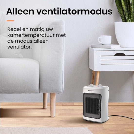 Pro Breeze 2000 W Mini Keramische Ventilatorkachel - 3 Warmtestanden, Ventilatorstand, Ingebouwde Bescherming tegen Oververhitting en Kanteling, Elektrische Verwarming - Wit