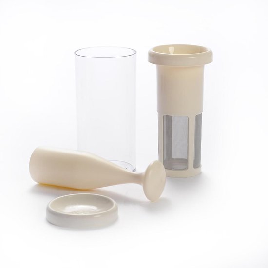 - ROBUUST EN DUURZAAM. Volledig geproduceerd in Spanje, gemaakt van hoogwaardige materialen van Europese makelij. Bestaat uit 4 delen: Het filter is gemaakt van Duits roestvrij staal. De deksel, stamper en container zijn gemaakt van kunststof vrij van giftige bestanddelen zoals BPA, BPS, PVC, formaldehyde en ftalaten. In het geval van een mankement krijg je met je aankoopbewijs en een foto van het mankement 2 jaar volledige garantie en een vervangend onderdeel thuisgestuurd. Vaatwasmachinebestendig.