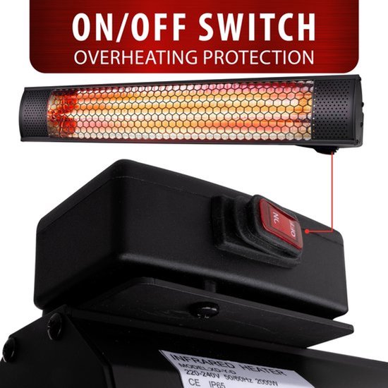 alpina Heater Terrasverwarmer met Infrarood Verwarming - Heater Elektrisch Wandmontage 2000W - Terrasverwarmer IP54 Stof- en Spuitwaterdicht - Terrasheater - 57 x 11,5 x 11 cm