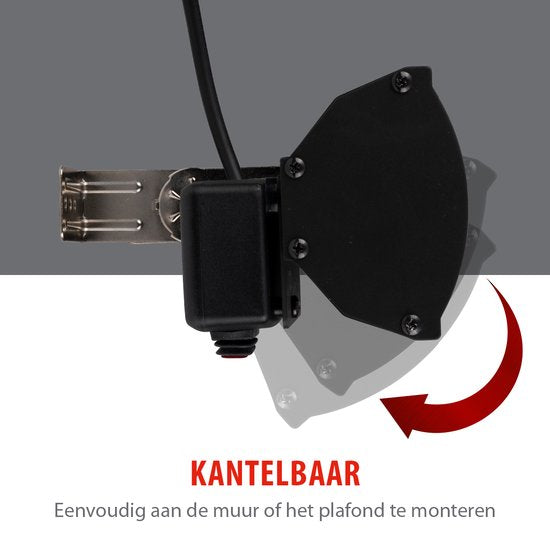 Terrasverwarmers zorgen ervoor dat je veel vaker en langer buiten kan zitten. Verleng het buitenseizoen met een hangende heater aan je balkon, tuin of overkapping met deze elektrische terrasverwarmer van alpina! Deze hangende elektrische kachel brengt een aangename warmte mee. Naast gebruik buitenshuis kun je deze elektrische verwarming prima binnen ophangen als (extra) plaatselijke verwarmer in een schuur, garage of werkplaats. Zo'n elektrische verwarming is voordeliger in gebruik dan een heater op gas. De heater werkt met infrarood verwarming, heeft een behoorlijk vermogen van 2000 Watt en is geschikt voor ruimtes van 12 tot 18m². Naast verwarmen geeft de terrasverwarmer van alpina ook een goede hoeveelheid licht af zodat je ook in de avonduurtjes buiten kunt blijven zitten.