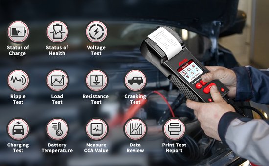 De BST600 maakt gebruik van geavanceerde testtechnologieën om batterijtemperaturen te meten en nauwkeurig de actuele CCA-waarden te bepalen. Het apparaat is ontworpen voor zowel 12V als 24V start- en laadsystemen, waarbij het snel tests uitvoert voor koud-startstromen, interne weerstand, batterijlevensduur en gedetailleerde conditieweergave.