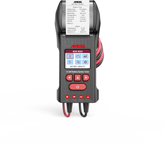 De Ancel BST600 accutester biedt nauwkeurige en snelle tests voor zowel 12V als 24V-accu's. Het testbereik varieert van 100 tot 2000 CCA, waardoor het compatibel is met auto's, vrachtwagens, boten en zelfs golfkarren.