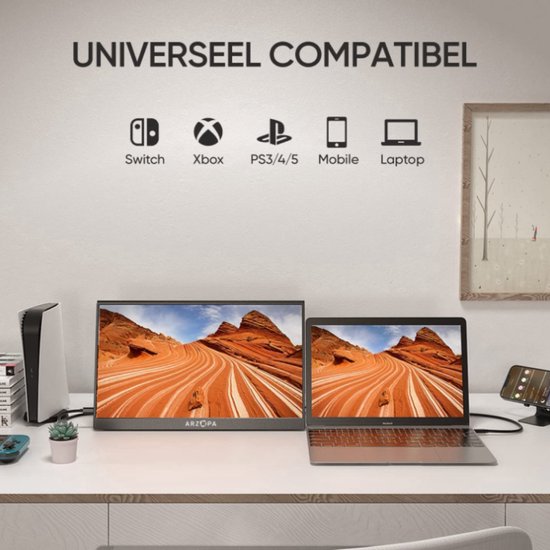 Ben je op zoek naar een extra scherm om overal productief te kunnen zijn? De Arzopa draagbare monitor, met een schermgrootte van 15,6 inch en een 1080p FHD resolutie, maakt dit mogelijk.