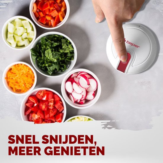 Beper Elektrische Hakmolen - 5 Roestvrijstalen Messen - Hakmolen - Handmatige Hakmolen - Keukenhakker - Groentenhakmolen - Uiensnijder - 250ml