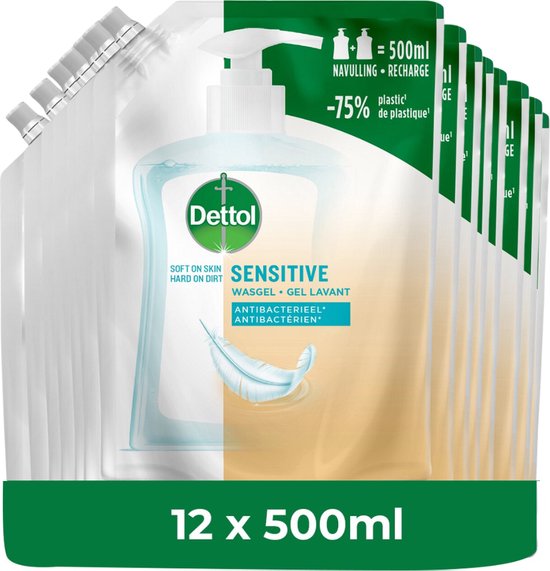 Dettol - Handzeep - Antibacterieel - Navulling Sensitive - 12x 500ML - Voordeelverpakking
