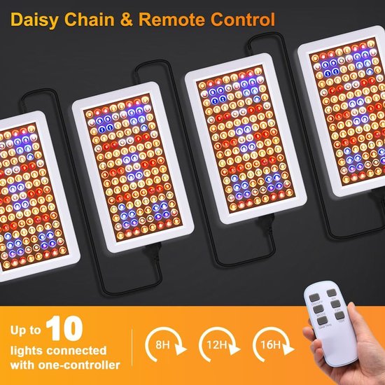 DragonLight BW3000 LED Grow Light Full Spectrum with IR UV Dual LED Chip, 8/12/16H Timer, 3m Cable, Grow Vegetables and Flowers in Greenhouse and Indoor Plants